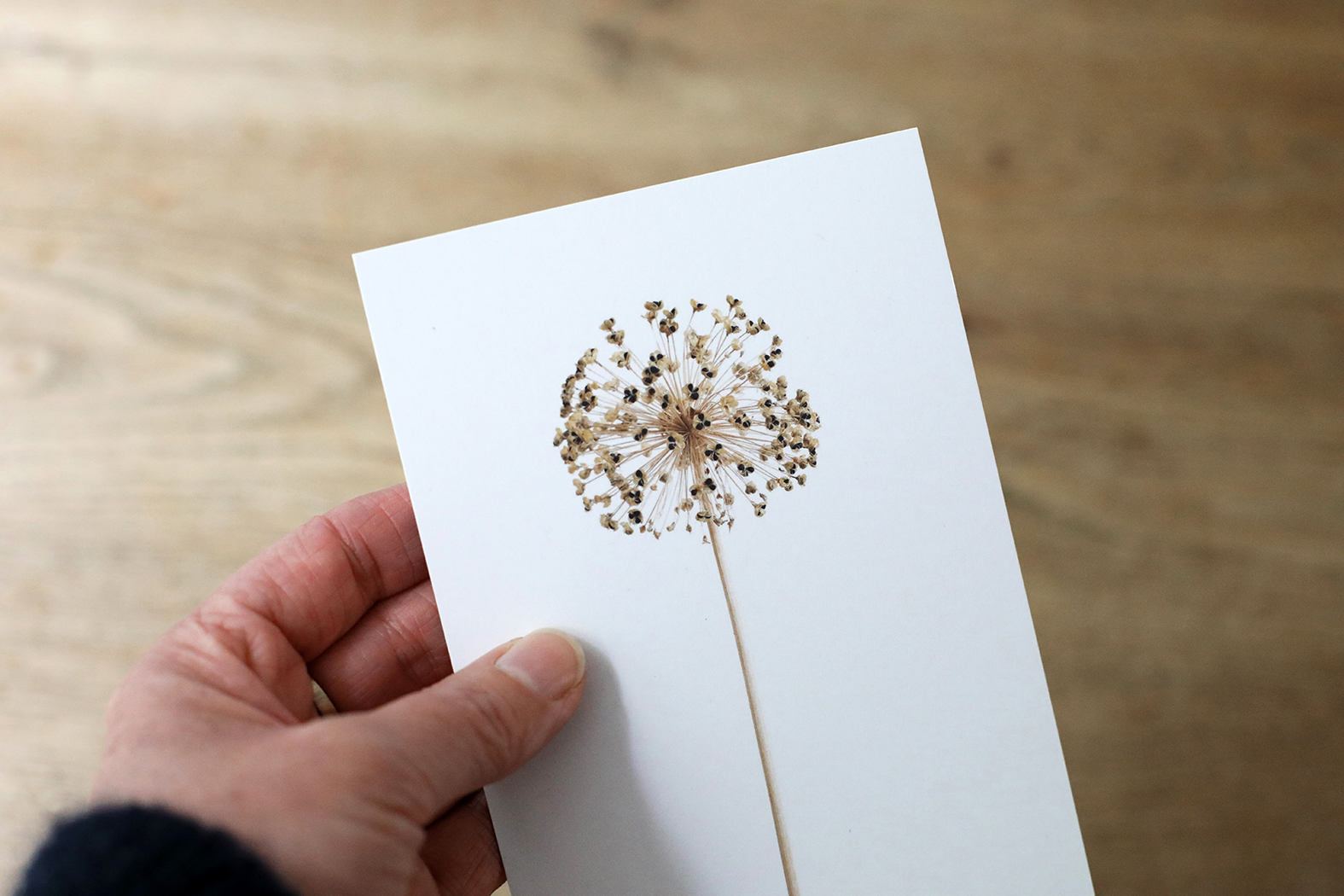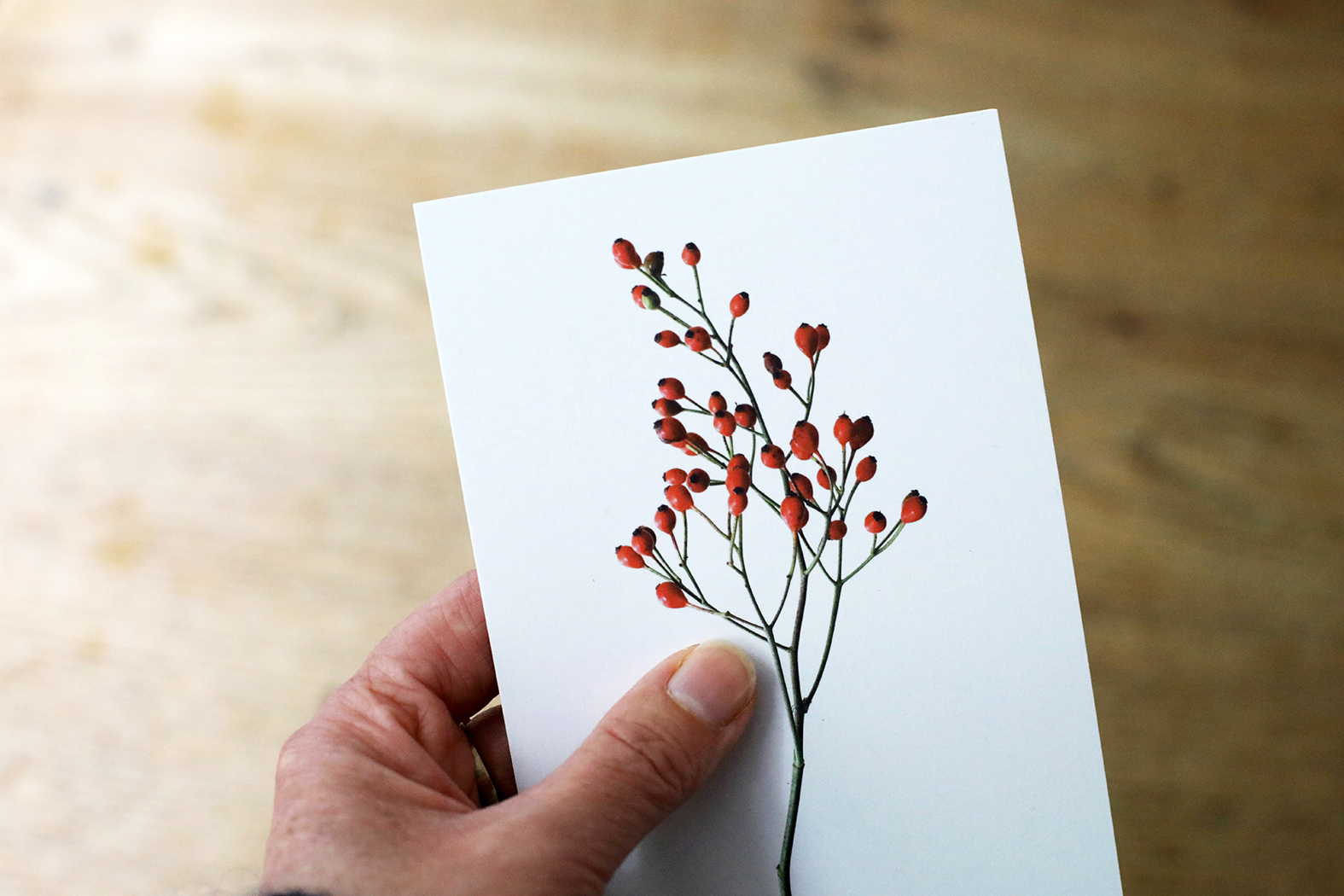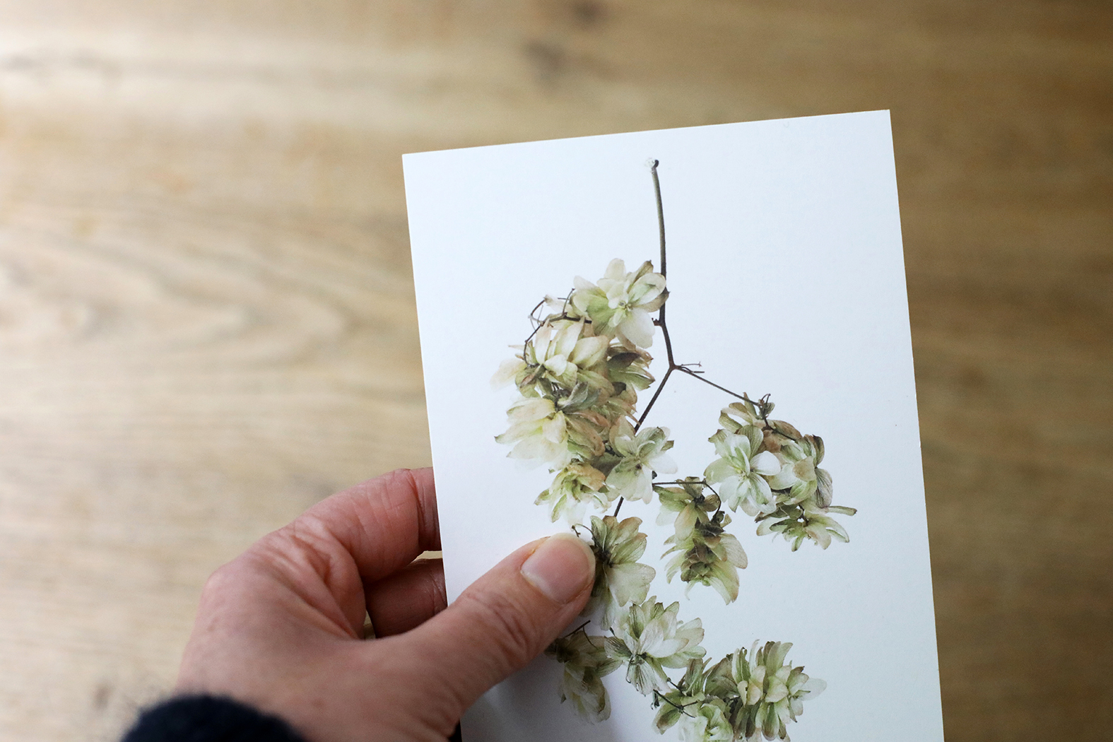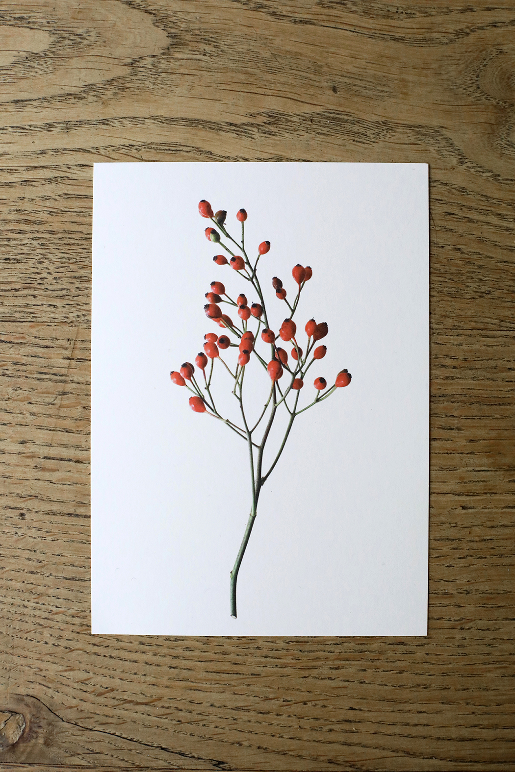 Tijd voor weer een nieuw setje ansichtkaarten met vondsten uit de natuur&tuin. Zo vlak voor de feestdagen koos ik voor Rozenbottels, Lelietje-van-dalen, Hop en Allium. Met de symbolische betekenissen liefde, geluk, bescherming en gezondheid nog leuker om als kerst- en of nieuwjaarskaart te versturen. De foto’s zijn geprint op gebroken wit 300 grams kraft papier. De achterkant van de kaart is blanco. Er staat klein mijn naam, website adres en de naam van de plant of bloem op.