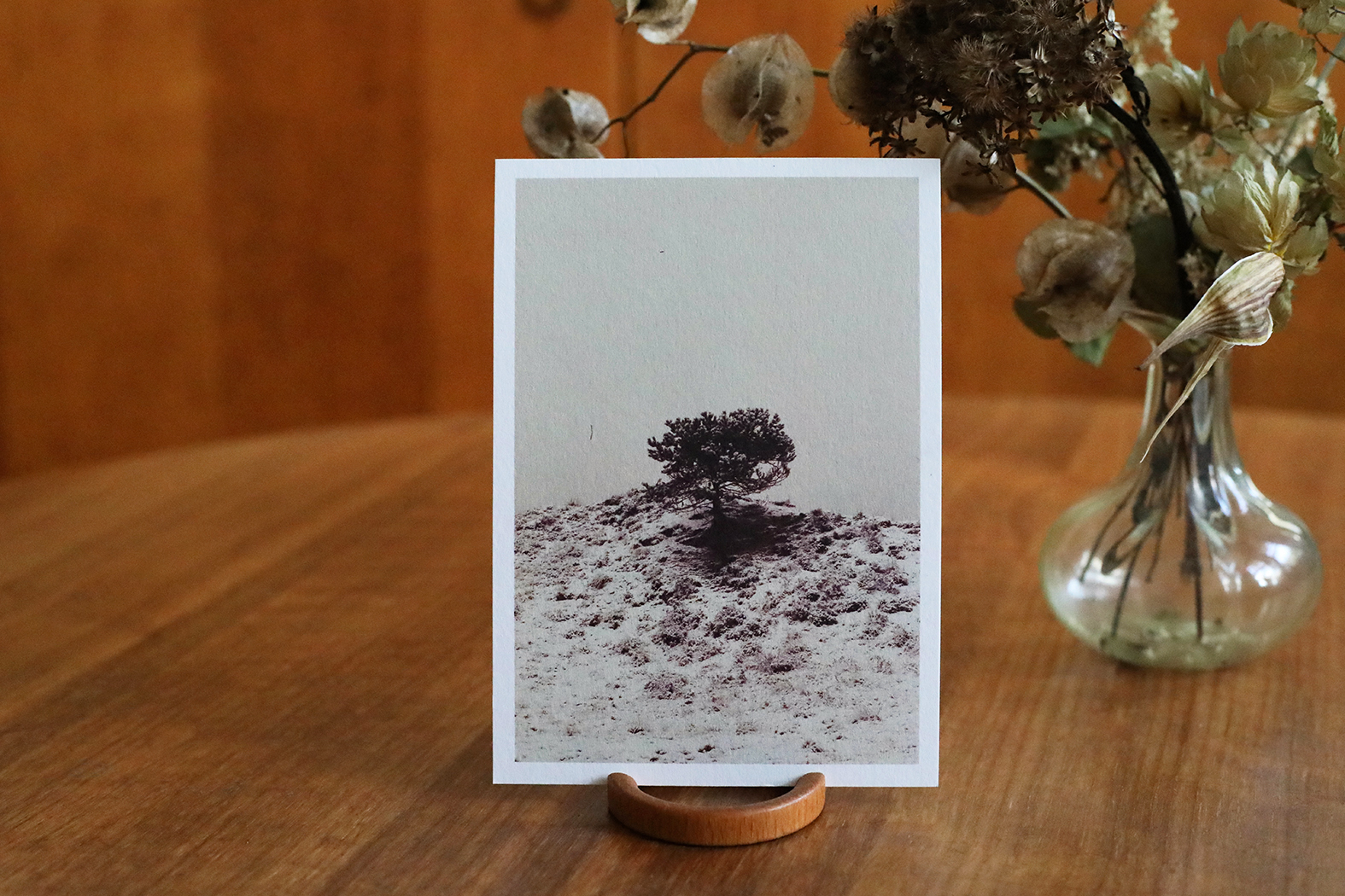 Dit winterlandschapje maakte ik februari 2025 op Terschelling met de oude analoge camera van mijn vader. De foto is geprint op mat, grof en stevig wit 350 grams papier met een 5 mm witrand. Leuk voor in bijvoorbeeld een vintage lijstje of een mooi kaartenhoudertje. De achterkant van de kaart is blanco. Er staat klein mijn naam, website adres en de naam van de plek waar de foto is gemaakt.